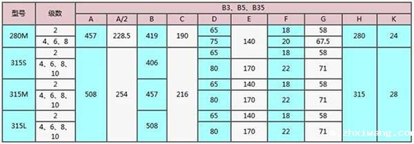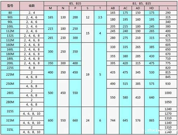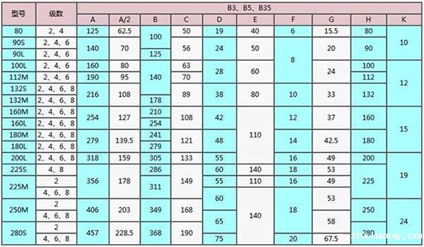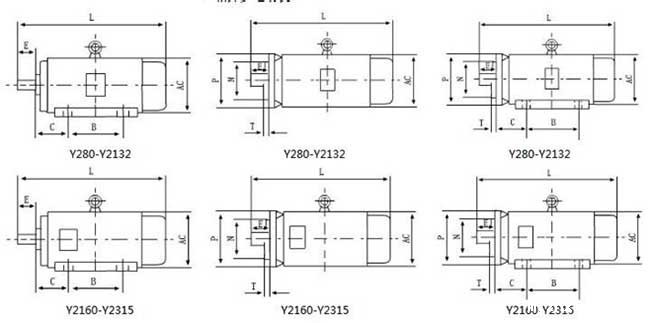 B35型 - - 机座有底脚,端盖上有大凸缘,轴伸在凸缘端。